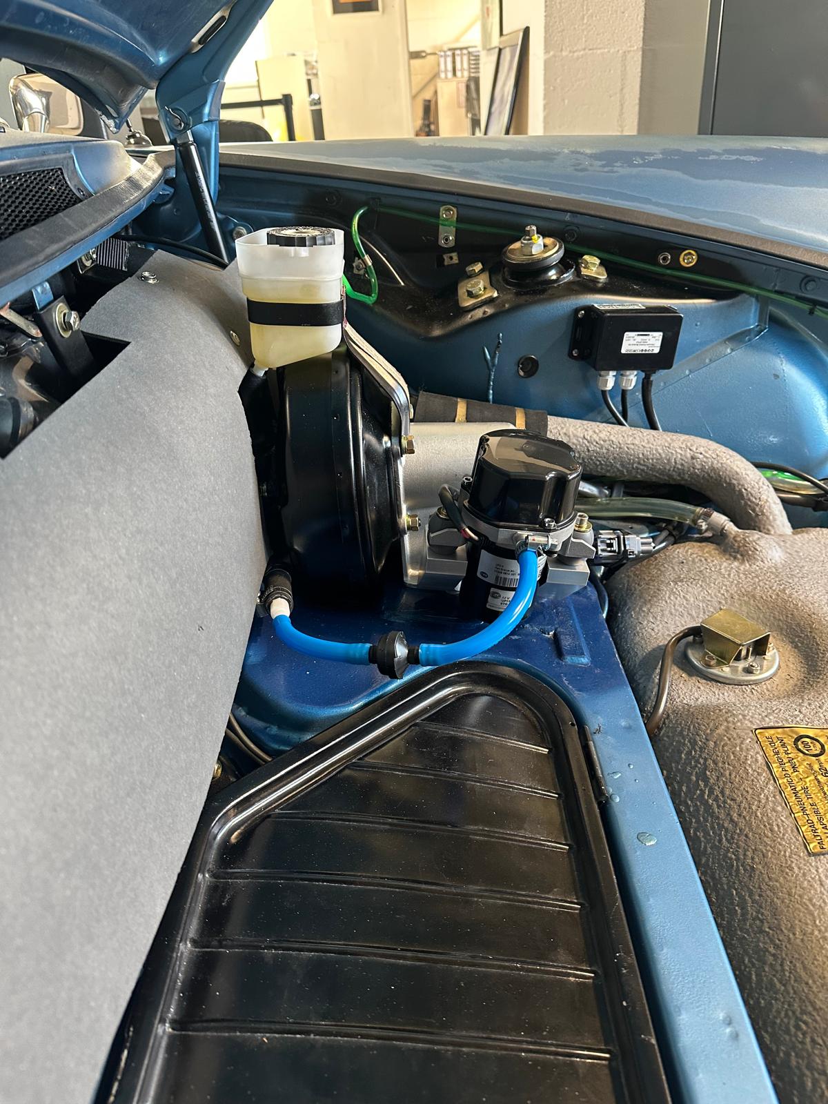 Der Einbau eines Bremskraftverstärkers (BKV) in ein Porsche F-Modell – also die frühen 911 und 912 von 1964 bis 1973 – ist trotz fehlender Originalität technisch sehr sinnvoll. Die Fahrzeuge verfügen ab Werk über keine Bremskraftunterstützung, weshalb sie eine deutlich höhere Pedalkraft erfordern und sich insbesondere bei schneller Fahrt oder auf kurvigen Strecken anspruchsvoller dosieren lassen. Ein BKV reduziert die notwendige Fußkraft spürbar und verleiht dem Bremssystem ein moderneres, feinfühligeres Ansprechverhalten. Gleichzeitig erhöht sich die Fahrsicherheit, da sich kürzere Bremswege erzielen lassen, Notbremsungen stabiler ausfallen und das Auto bei Nässe oder kalten Bremsen besser reagiert. In heutigen Verkehrssituationen – geprägt von dichterem Verkehr und leistungsstärkeren Fahrzeugen – wird das F-Modell damit deutlich sicherer.
